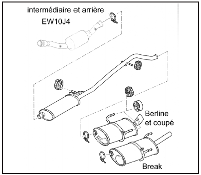 Revue technique automobile - Peugeot 406 / Évolutions des modèles (Moteur essence 2.0 EW) / Caractéristiques / Echappement