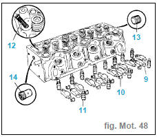 - Mesurer le retrait de la tête de soupape par rapport au plan de joint de culasse (fig. Mot. 50).