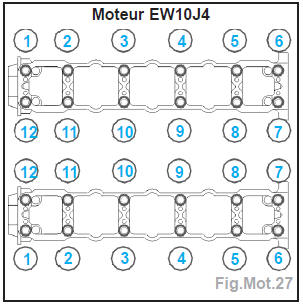 - Approcher puis serrer progressivement les vis de fixation dans l'ordre indiqué (Fig.Mot.27/28).